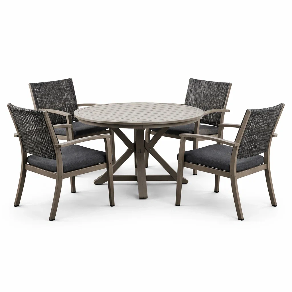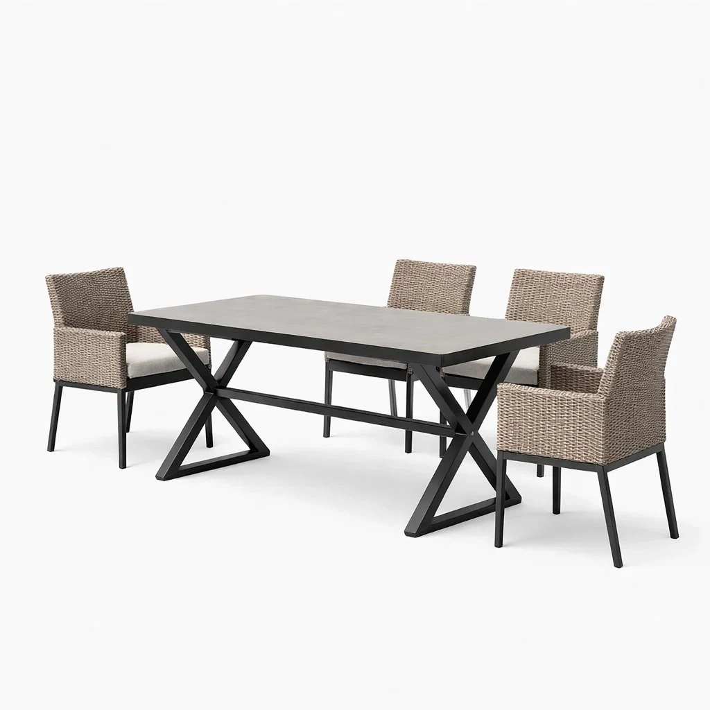 Set tavolo e sedie da esterno con sedie in legno e rattan grigio
