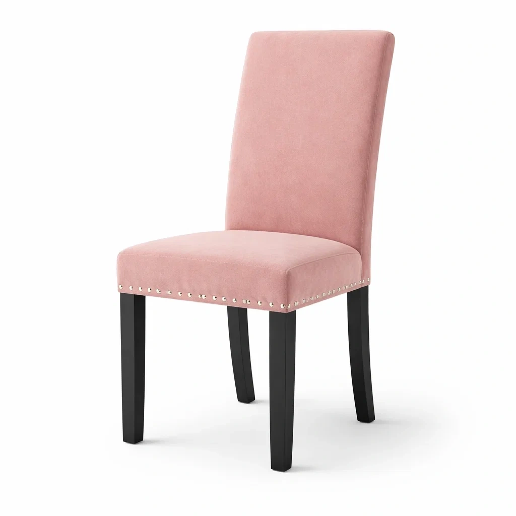 Sedia da pranzo in legno con rivestimento in velluto rosa e gambe nere